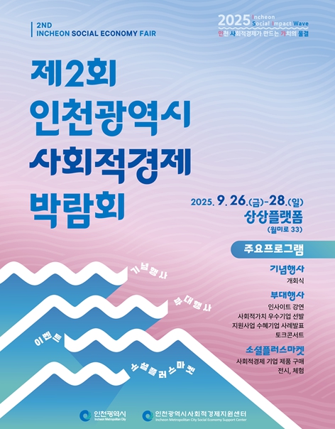 [메이저뉴스]인천광역시는 오는 9월 26일부터 28일까지 3일간, 인천 중구 상상플랫폼 웨이브홀에서 ‘제2회 인천광역시 사회적경제박람회’를 개최한다고 밝혔다.