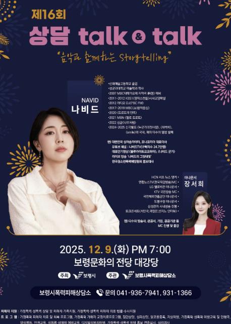 [메이저뉴스]보령시는 지난 9일 보령문화의전당 대강당에서 음악과 함께하는 스토리텔링 ‘제16회 상담 talk&talk’ 행사를 개최했다고 밝혔다.