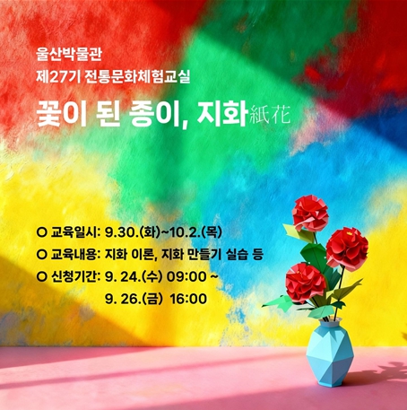 울산박물관 관계자는 “지화는 우리 조상들의 삶과 의례 속에서 오랜 시간 정성으로 다듬어진 전통 예술”이라며 “이번 체험을 통해 참가자들이 전통의 숨결을 느끼고, 손끝으로 예술의 아름다움을 경험하는 뜻깊은 시간이 되길 바란다”라고 말했다.