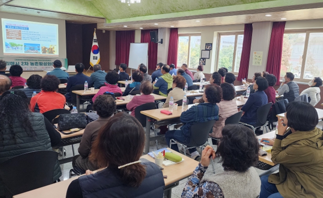 교육에는 50여명의 농촌마을 주민리더들이 참여해 ▲마을만들기 주민리더의 자세와 역할 ▲주민회의 운영방법 및 운영 워크숍 ▲농촌지역개발사업의 이해 ▲법정의무교육(4대 폭력예방교육)에 대해 배웠다.