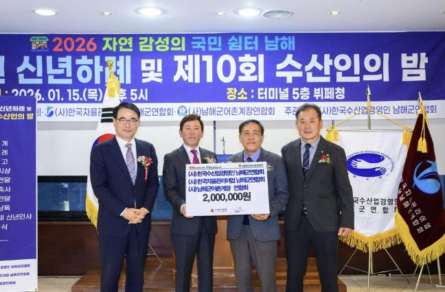 이번 성금은 (사)한국수산업경영인 남해군연합회, (사)남해군어촌계장연합회, (사)한국자율관리어업 남해군연합회 등 3개 수산단체가 협력해 마련했다.