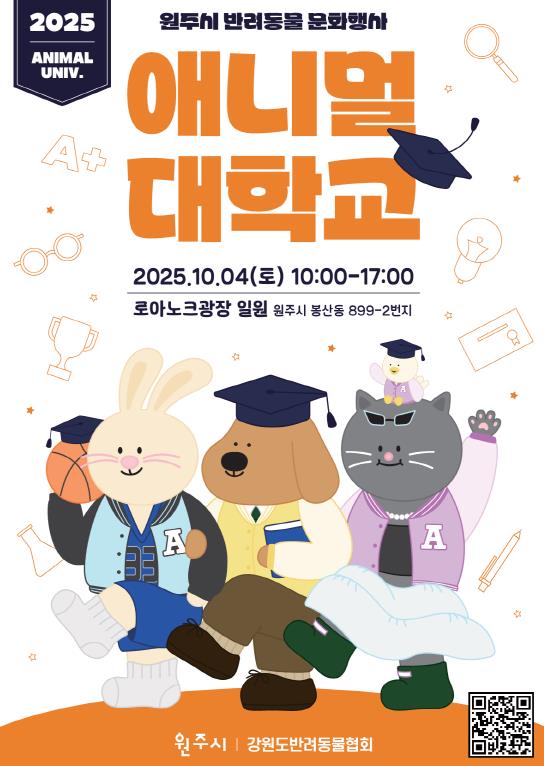 [메이저뉴스]원주시농업기술센터는 10월 4일 오전 10시 원주천 로아노크광장에서 반려동물 문화행사 ‘애니멀 대학교’를 개최한다.