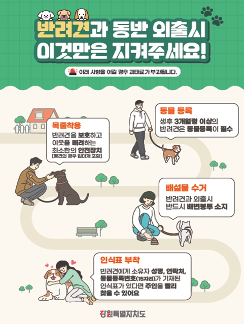 아울러, 반려동물 동행 캠페인은 도내 18개 시군과 강원도수의사회 등과 협력해 추진된다.