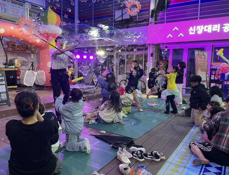 | ▲ 홍천군 도시재생사업, 전통시장을 수놓은 ‘버블쇼’ |