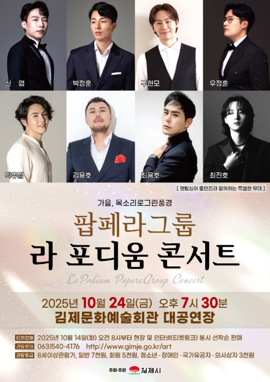 [메이저뉴스]깊어 가는 가을, 특별한 음악의 향연 팝페라 그룹'라 포디움 콘서트'가 오는 24일 오후 7시 30분 김제문화예술회관 대공연장에서 펼쳐진다.