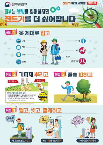 진드기 매개 감염병 예방을 위해서는 무엇보다 진드기에 물리지 않는 것이 가장 중요하다.