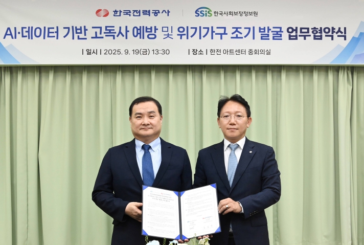 [메이저뉴스] 한국전력이 9월 19일 한전 아트센터에서 복지부 산하 한국사회보장정보원과 ‘AI·전력데이터 활용 복지 사각지대 발굴’을 위한 업무협약(MOU)을 체결했다.