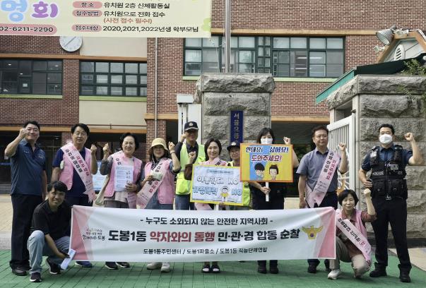 도봉1동 지역사회보장협의체, 도봉1파출소가 참여한 이번 캠페인은 아동·노인학대 예방과 어린이 안전한 등하굣길 조성을 주제로 진행됐다.