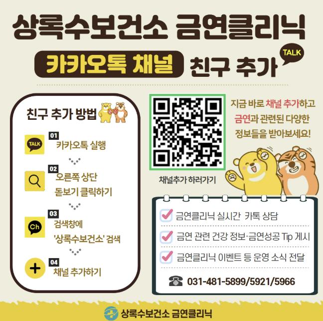 | ▲ 상록수보건소 금연클리닉 카카오톡 채널 친구 추가 안내 디지털 홍보자료. |