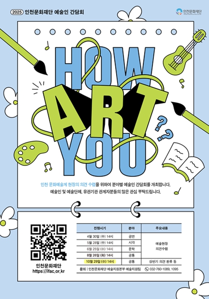 2024년부터 시작된 예술인 간담회 'HOW ART YOU?'는 인천 예술인의 의견을 듣고 이를 사업 운영에 반영하는 선순환 구조를 만들어왔다.