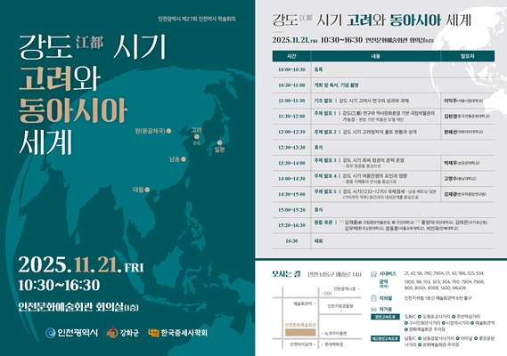 [메이저뉴스]인천광역시는 제27회 인천역사 학술회의 ‘강도 시기 고려와 동아시아 세계’를 오는 11월 21일 인천문화예술회관에서 개최한다고 밝혔다.