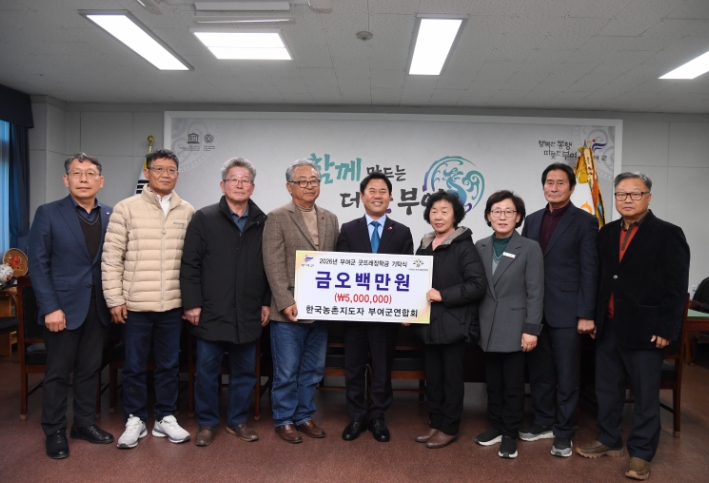 [메이저뉴스]부여군농촌지도자회(회장 임병우)는 부여군청을 방문하여 인재 육성을 위한 장학금 5백만 원을 (재)부여군굿뜨래장학회에 기탁했다고 13일 밝혔다.