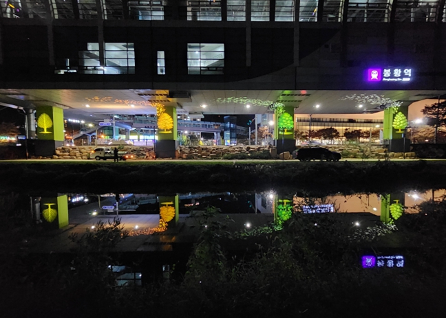 | ▲ 경전철하부공간 경관개선사업 봉황역 야간경관 |