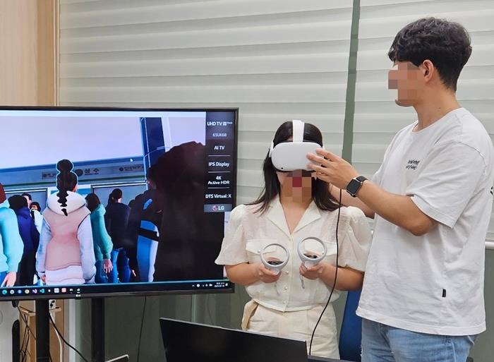 | ▲ 성수동 인파 밀집 사고 대응을 위한 가상현실 교육을 체험 중인 모습 |