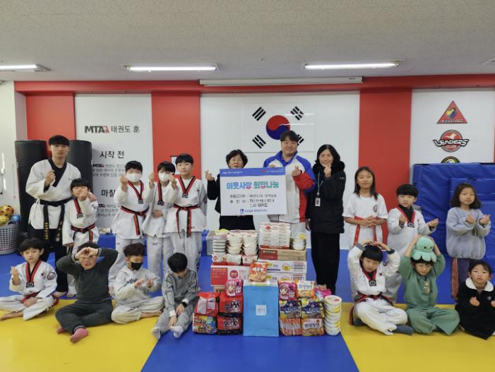[메이저뉴스]수원시 권선구 호매실동에 위치한 퍼스트 위너 MTA 능실태권도장에서는 12월 한 달가량 원생들의 햇반, 라면 기부 릴레이가 이어졌다.