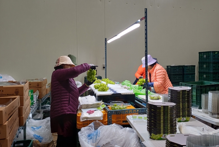 | ▲ 영주 샤인머스켓, 호주 선적을 위해 상품을 다듬고 있다 |