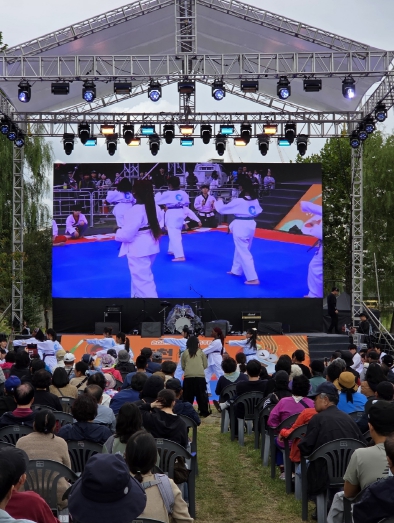 | ▲ 외국인 유학생 동아리 ‘글로벌 친구들’의 태권도 공연 |