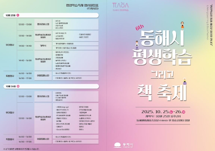 [메이저뉴스]동해시는 오는 10월 25일부터 26일 이틀간 열리는 '제16회 동해시 평생학습 그리고 책 축제'에서 특별한 시민 참여형 이벤트가 펼쳐진다.