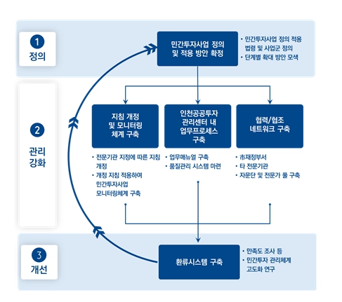 이에 연구는 관리 강화 방안으로 사업 전 생애주기를 관리하는 ‘PDCA형 종합적 민간투자사업 관리' 도입과 민간투자사업의 명확한 정의 확립을 제안했다.