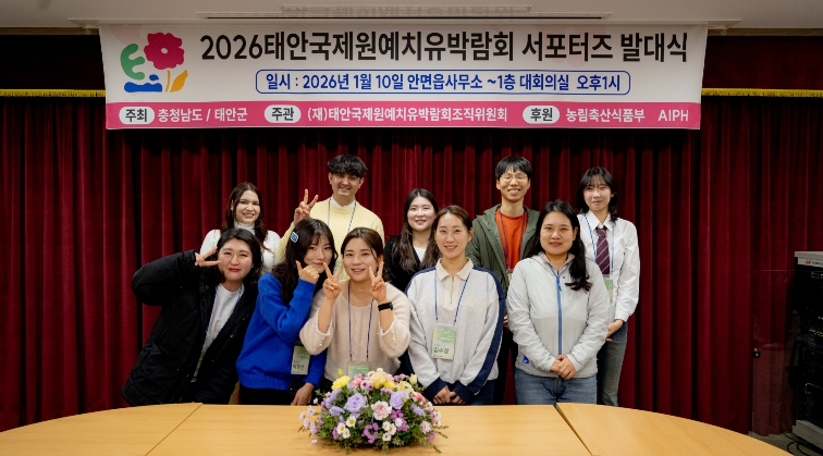 [메이저뉴스]태안국제원예치유박람회 조직위원회는 1월 10일 오후 1시 태안 안면도 일원에서 ‘태안국제원예치유박람회 서포터즈 발대식’을 열고 시민 참여형 홍보 활동을 본격적으로 시작한다고 밝혔다.