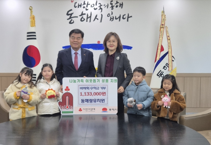 [메이저뉴스]동해랑유치원(원장 이은주)은 최근 원내에서 개최한 바자회 수익금 1,133,000원을 어려운 이웃을 위해 사용해 달라며 동해시에 기탁했다.
