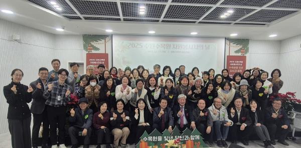 | ▲ ‘2025 수원수목원 수수랑 자원봉사자의 날’ 기념행사 참가자들이 함께하고 있다. |