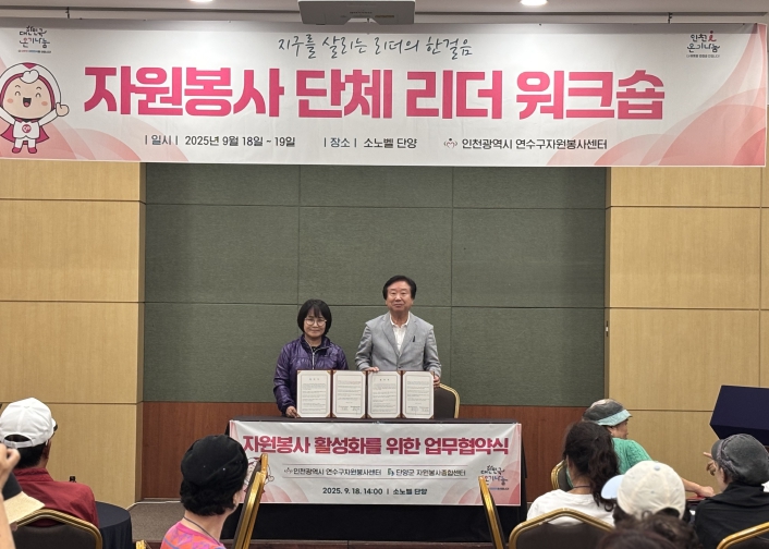 [메이저뉴스]인천광역시 연수구자원봉사센터와 충청북도 단양군자원봉사종합센터는 18일 (단양소노벨)에서 지역간 자원봉사 활성화와 네트워크를 통해 지역사회 발전을 위한 업무협약(MOU)을 체결했다고 밝혔다.