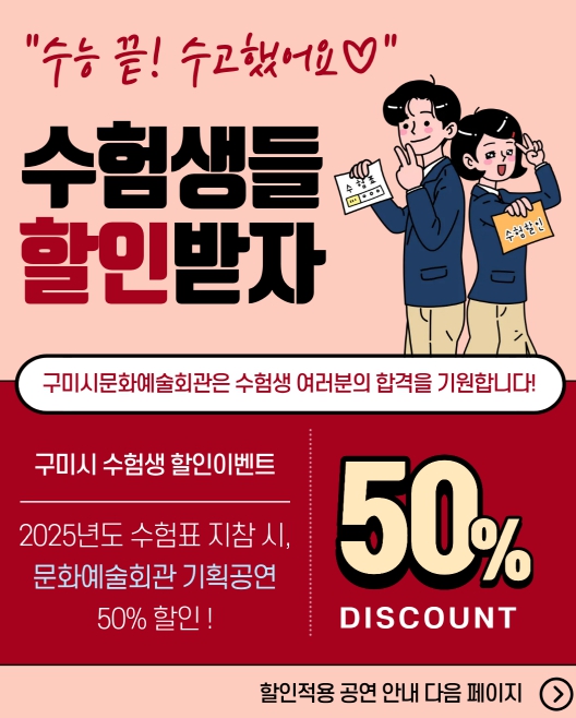 | ▲ 구미문화예술회관, 수험생 50% 할인 진행 |