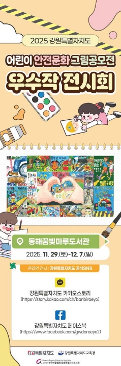 [메이저뉴스] 동해꿈빛마루도서관은 강원특별자치도가 주관한 ‘2025년 어린이 안전문화 그림 공모전’에서 입상한 우수작품 전시회를 개최한다.