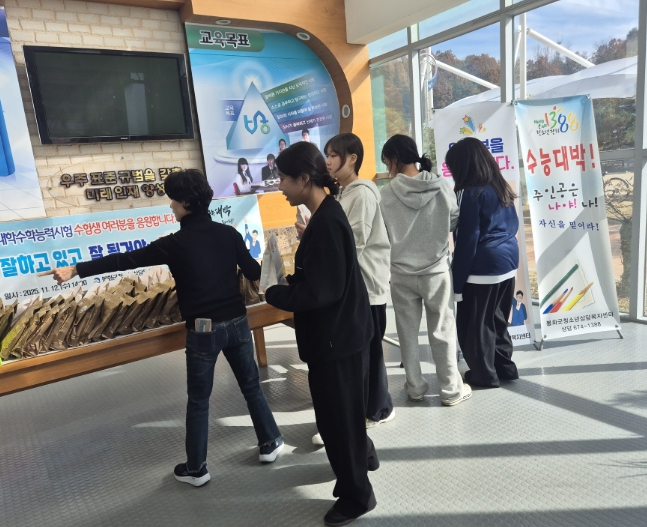 [메이저뉴스]봉화군청소년상담복지센터는 2026학년도 대학수학능력시험 수험생을 위해 예비소집일인 지난 12일 봉화고등학교에서 ‘수능 응원 아웃리치’를 진행했다.