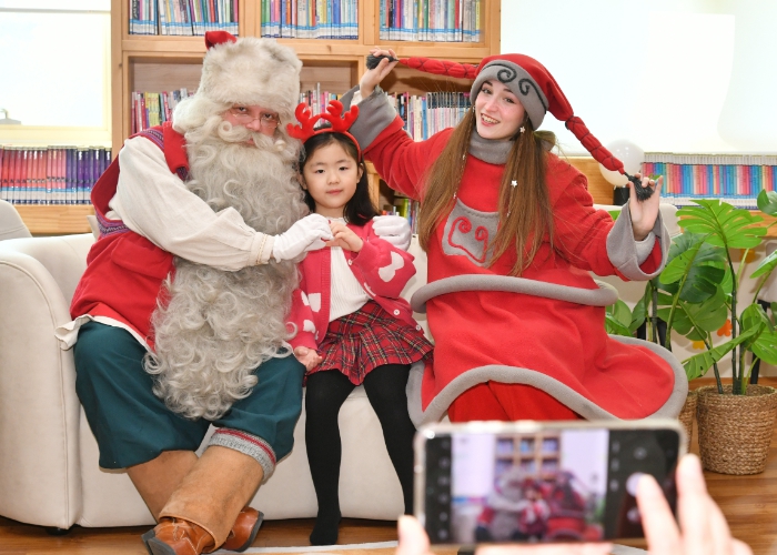 [메이저뉴스]핀란드 로바니에미시 산타마을에서 날아온 ‘리얼 산타’와 ‘요정 엘프’가 화천 어린이들과의 약속을 지키기 위해 공공 도서관을 찾았다.