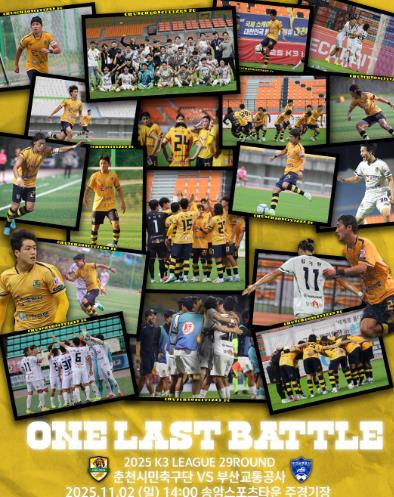 [메이저뉴스]춘천시민축구단의 2025 시즌 마지막 홈경기가 오는 11월 2일 오후 2시 송암스포츠타운에서 열린다.