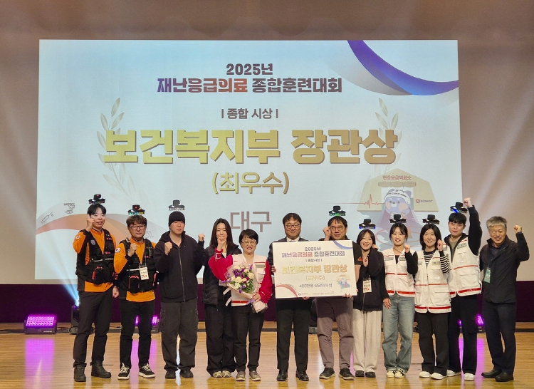 [메이저뉴스] 대구광역시는 11월 11일부터 12일까지 충남 천안 JEI재능교육연수원에서 열린 ‘2025년 재난응급의료 종합훈련대회’에서 최우수상(보건복지부장관상)을 수상하며, 전국 1위를 차지했다.