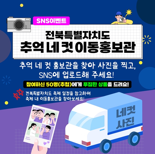 [메이저뉴스]전북특별자치도는 10월 10일부터 11월 1일까지 도내 주요 축제 현장에서 ‘추억 네 컷 이동홍보관’을 운영한다고 밝혔다.