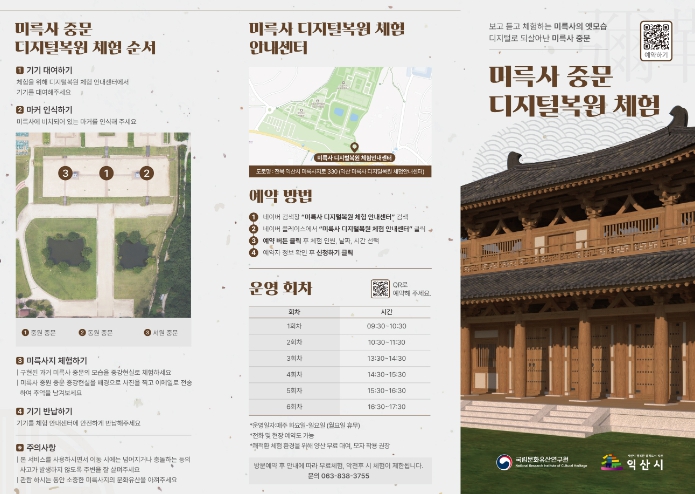 온라인 접수는 네이버에서 '미륵사 디지털 복원 체험 안내센터' 검색 후 예약 누리집에서 하면 된다.