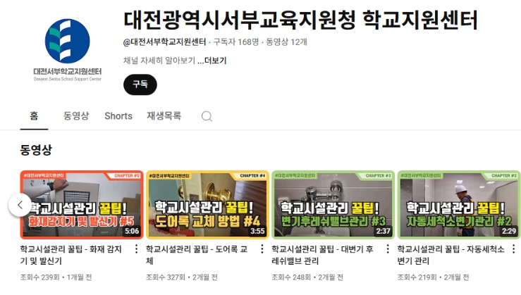 [메이저뉴스]대전서부교육지원청은 학교 시설관리의 전문성과 효율성을 높이기 위해 학교지원센터 시설관리 주무관의 노하우가 담긴 교육 영상을 유튜브를 통해 제공한다고 밝혔다.