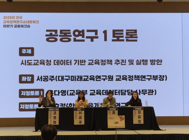 대전교육과학연구원 김선희 대전교육정책연구소장은 “데이터 기반 교육정책 추진을 위해서는 기관별 협업 및 지원체계 구축이 절실하다”며 “그런 의미에서 이번 전국교육정책연구소네트워크 하반기 공동워크숍은 디지털‧AI 세상 속에서 전국 시‧도교육청, 전국 교육연구기관과의 협력체제를 더욱 공고히 하는 매우 뜻깊은 시간이었다”라고 전했다.