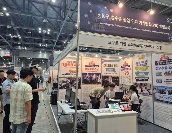 [메이저뉴스]서울 성동구는 9월 17일부터 19일까지 경기도 고양 킨텍스에서 열린 ‘2025 대한민국 안전산업박람회(K-SAFETY EXPO 2025)’에 참가해 전국 최초 성수역·연무장길·앤더슨씨 등 지역 주요 일상공간을 배경으로 한 ‘VR(가상현실) 인파위기관리 체험교육’ 프로그램을 선보이며 큰 주목을 받았다고 밝혔다.