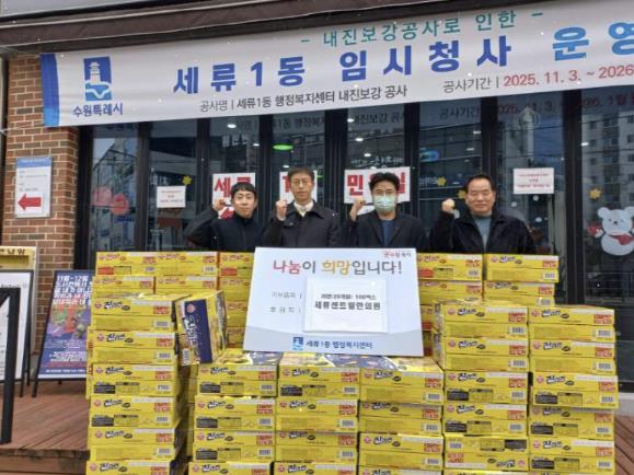 이번 나눔은 겨울철 경제적 어려움을 겪고 있는 취약계층 이웃들에게 작은 힘이 되고자 마련됐으며, 기탁된 라면은 세류1동 내 취약계층 및 도움이 필요한 가구에 전달될 예정이다.