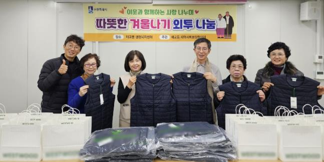 | ▲ 수원시 팔달구 매교동 지역사회보장협의체, 홀몸어르신에 따뜻한 겨울나기 외투 전달 |