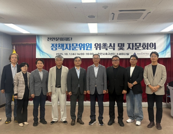 안동순 천안문화재단 대표이사는 “재단은 지역문화 예술 발전을 선도하는 기관으로서, 제3기 정책자문위원회의 출범이 재단의 미래 전략 수립에 큰 힘이 될 것으로 기대한다”며 “위원님들의 전문적이고 소중한 의견을 적극 반영해 시민이 체감할 수 있는 성과를 만들어 갈 것”이라고 말했다.