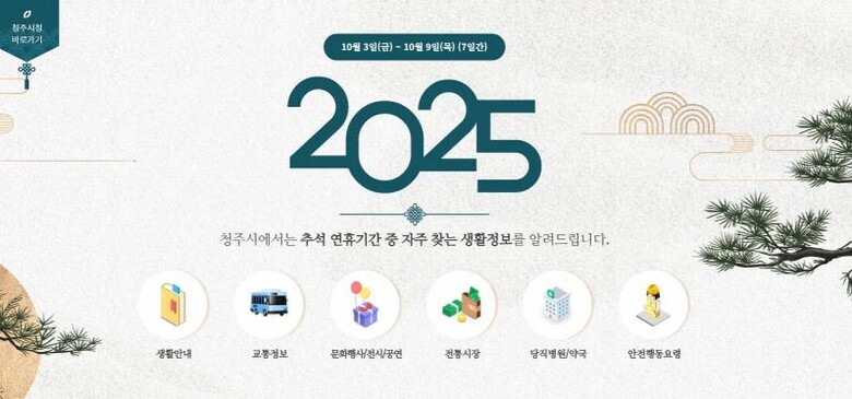 | ▲ 추석 연휴 중 생활정보는 청주시 누리집에서! |