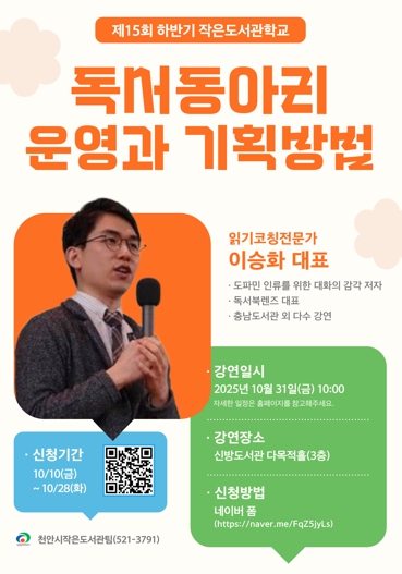 | ▲ 1. 천안시 ‘제15회 하반기 작은도서관학교’ 홍보문. |