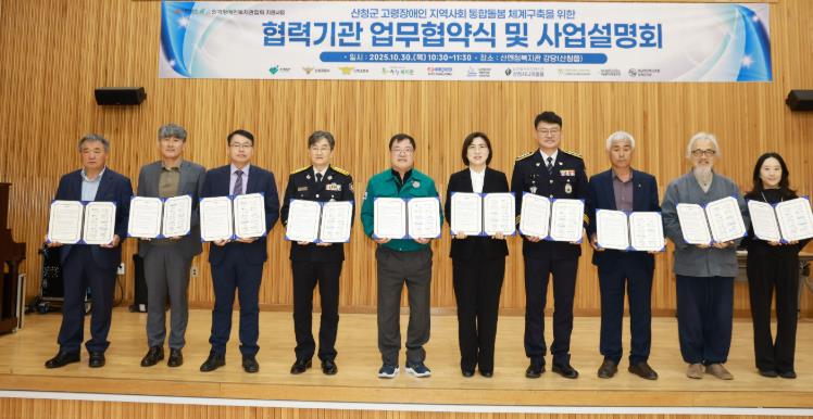 협약에 앞서 진행한 사업설명회에서는 지난 5월부터 3개월간 실시한 2025년 산청군 고령장애인 실태조사 연구 결과 발표가 이뤄졌다.