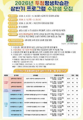 | ▲ ‘2026년 상반기 평생학습 프로그램’ 수강생 모집 홍보문. |