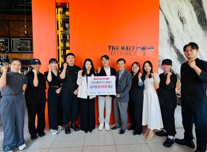 [메이저뉴스](재)천안시복지재단은 24일 ㈜더몰트하우스컴퍼니가 천안 불당점 임직원들과 함께 정기후원에 동참했다고 밝혔다.