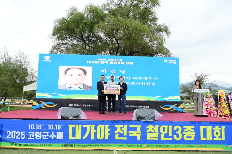 [메이저뉴스]10월 19일 세무법인 팔공 차길녕 대표세무사가 ‘2025 고령군수배 대가야 전국 철인3종 대회’ 개막식에서 지역의 교육 발전과 인재 양성을 위해 사용해 달라며 교육발전기금 500만원을 기탁했다.