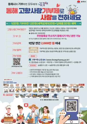 [메이저뉴스]동해시는 연말정산 시기를 맞아, 지속적인 기부 참여 분위기를 조성하고 고향사랑기부제 활성화를 도모하기 위해‘연말 추가 이벤트’를 추진한다.