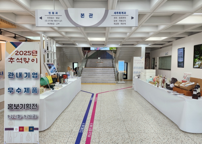 이번 기획전은 추석 명절을 앞두고 지역에서 생산되는 우수제품을 군민과 방문객에게 직접 소개하고, 판매 및 소비를 촉진함으로써 지역경제 활성화를 도모하기 위해 마련됐다. 전시는 9월 22일(월)부터 26일(금)까지 5일간 군청 본관 로비에서 진행된다.