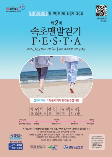 [메이저뉴스]속초시는 강원특별자치도 및 강원도민일보와 함께 오는 9월 27일 속초해수욕장에서 외옹치해수욕장 구간을 따라 ‘제2회 2025 속초시 강원 맨발걷기 대회’를 연다. 지난해에 이어 두 번째로 마련되는 이번 대회는 자연 속에서 맨발로 걸으며 건강과 힐링을 동시에 경험할 수 있는 특별한 축제다.